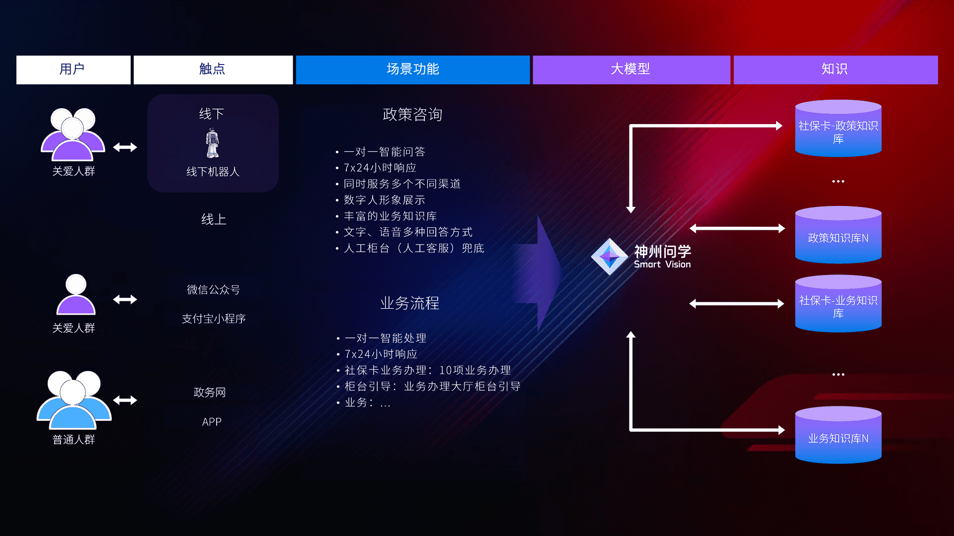 • 线上线下全覆盖:线上提供微信公众号、、、支付宝小程序、、政务网、、、app多种渠道,,,,与线下机器人形成完整服务体系。。